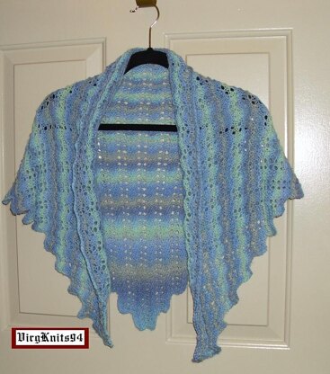 This pattern is a triangular shawlette with a small collar edging at the top. The shawlette is one size however there is enough yarn left over to make the shawl larger if desired.