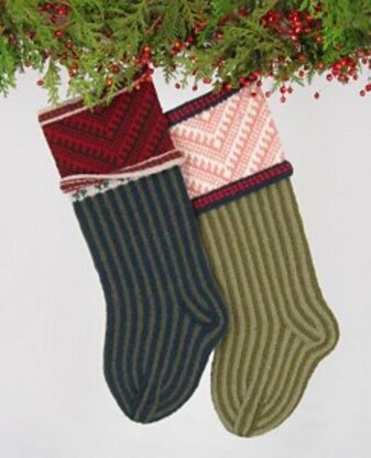 Pattern provides clear written instructions, along wtih color charts for each colorway, to knit a Christmas stocking in the round.