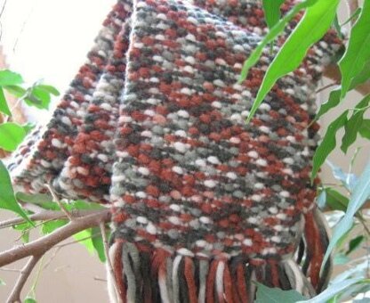 This cozy textured scarf is based on a simple seed stitch pattern suitable for inexperienced knitters.