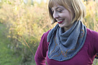 This shawlette is worked from the top center out using beads to create a pattern instead of lace or cables. Beads are not pre-strung, they are added as you go with a crochet hook.