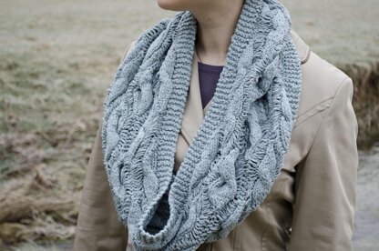 Finish your chic ensemble in this Springtime in Paris inspired cowl as you float down the Seine River towards a romantic rendezvous at a French cafe. Drop stitches and wavy cables flow continuously with the movement of the river. Fresh croissants and cafe au lait won’t be the only tempting treats warming your heart.