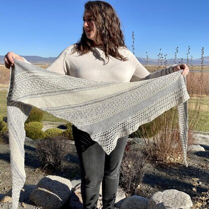 The Semi-Precious Shawl was first released in 2017 with the Madeline Tosh shawl club subscription from Jimmy Beans Wool. The original version uses 12 different colors, but I always wanted to create a 2 color version of the shawl - mostly so there wouldn’t be so many ends to weave in! The result is a shawl that is slightly asymmetrical and just big enough to for light neck and shoulder coverage.
