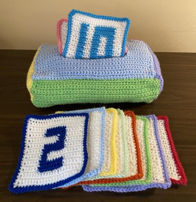 This crochet patterns has the instructions to make the tissue box and 10 crochet numbers. I couldn't think of a more perfect gift in for the toddler in your life.