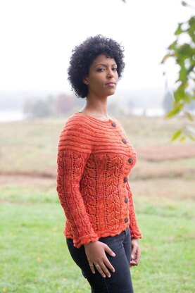 September Spirit is the perfect Autumn sweater. The lacy leaf pattern resembles the colorful changing leaves, and the eyelets help the sweater breathe preventing it from being too warm. This fun-to knit sweater is worked in one piece to the underarms where it joins with the sleeves and decreases over a few rounds of the yoke. To finish, the sleeves and underarms are seamed.