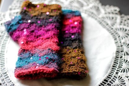 Wouldn't these gloves make a gorgeous gift for Christmas? They are warm and soft, and the little sequins scattered throughout the yarn just add to the charm.