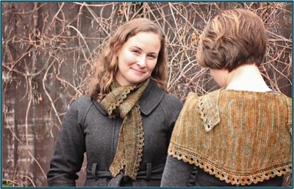 Notions: Tapestry needle. Skill level: Advanced beginner (increasing, decreasing, lace). Size/Finished measurements: Scarf: 72" from tip to tip, 9" deep at center. Shawlette: 62.5” from tip to tip, 12.5” deep at center. Measured after blocking.
