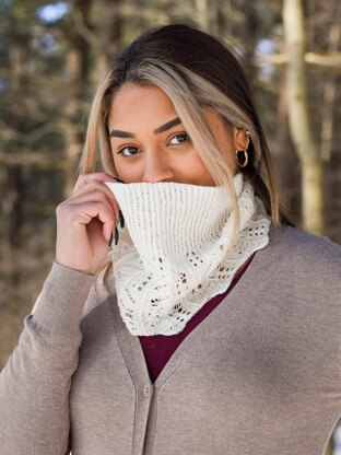 This pretty cowl in two sizes (S/L) makes beautiful use of a motif inspired by weeping cherry trees in bloom, with trailing branches filled with buds and new leaves. The highly embossed stitchwork makes for strong depth and stability, even in the silkiest of yarns. The somewhat complex pattern is made easier by working in the round, on the right side of the fabric; short row shaping adds some extra drape at the center front. Gorgeous in a smooth luxury blend, this design translates nicely for cool weather in a rustic wool blend as well.