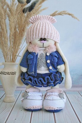 The pattern consists of 44 pages and includes more than 120 photographs and charts. The clothes are removable and made with knitting needles. This set will suit many Tilda dolls made by me earlier, and these clothes are almost universal for everyone. Set of clothes consists of a beautiful denim jacket with a fur collar; a denim skirt with fluffy layers; a sweater with a beautiful shiny star decoration; comfortable, stylish sneakers, a fashionable hat, and beautiful pants.