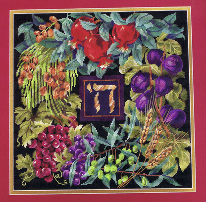 By Nancy Rossi. Seven different plants that are symbolic of the Jewish faith are depicted in this lovely design by Nancy Rossi. The motif in the center of the design is the Hebrew word Chai. This may be worked in Counted Cross Stitch or Needlepoint and finished in a variety of ways to make that special heirloom piece.\n