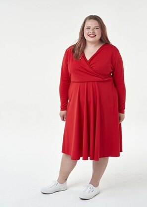 The Georgie Dress is a chic, everyday knit dress that is as comfy to wear as it is stylish. With a fit and flare style, it’s flattering on so many figures and makes a gorgeous outfit all year round. The Georgie Dress features a wrap over bodice which pleats into the side seams for shaping. The top is lined for a beautifully clean finish, as well as for extra comfort and support. Full-length set in sleeves can be cut at any point depending on your preference. When it comes to skirts, there are two variations: a 3/4 circle skirt designed to be sewn in heavier knits such as ponte di Roma, and a gathered skirt designed to be sewn in lighter jerseys. Elastic at the waist and along the neckline edges ensures the dress stays snug and close-fitting to the body, with no gaping! Add optional belt loops too.