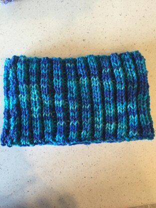 This colorful cowl is simple and quick to make. The stitch is simple so that the colors are the main attraction. Gauge is not critical. I used less than one skein of yarn for this project. Sewing needle is necessary for sewing end seam and weaving in ends.