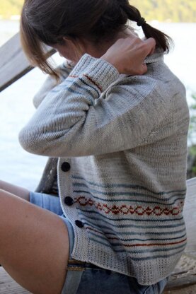 I wanted an easy cardigan with a classic look. The details on Shaken or Stirred are simple and delicate and the cardigan has a lovely feminine feel. The colourwork is very simple, but enough to be distinct, and the narrow shawl collar is kinda fun - it's worked in garter rib, with a distinct garter stitch border that shows off the contrast between the 2 textures when folded back. This is a sweater that will easily take you from summer into fall, and go with shorts and jeans. My other goal was to make a cardigan that could REALLY be modified. It’s knitted from the top down with contiguous shaping at the shoulders, so length or width throughout the sweater can be easily adjusted as you go. Depending on what you have for accent colors, you can knit the colourwork as written or add your own designs and you can play with the motif, the stripes or the placement of the panel as your tastes or stash dictate. Shown in Plucky Knitter, Primo Sport. The 3 contrast colours use just 50 yards each.