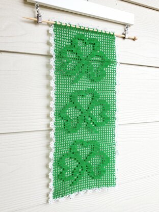 While waiting for the green leaves to spring up again, I invite you to crochet the Shamrock Table Runner with me. You will create the cute leaves for your table using filet crochet technique, which is very easy to do with the helpful chart.