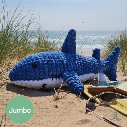 I’ve made Shannon the shark using a jumbo #7 weight yarn. This is ideal for a soft and huggable plush toy and is a pretty quick make. You can decide if you want to make your shark with or without the white underside piece. Shannon can also be made in super chunky yarn, with a smaller crochet hook. She is 26.5 inches long in jumbo yarn (when made with recommended materials), in super chunky yarn she is 15.5 inches long