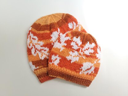 In Sanskrit, the autumn season is called Sharad. To embrace the arrival of autumn, consider a beanie that playfully inverts traditional fall colors. Imagine white fall leaves contrasting against a background of various shades of orange, brown, and yellow.