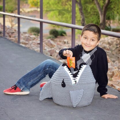 The perfect trick-or-treat bag for your "big kids"! This bag is sturdy and big enough to hold as much candy as your kid can collect. Don't send your kids out with pillow cases. Put your talents to use and whip up a cool shark bag. Use them beyond Halloween as a normal bag to show your love for sharks. Makes for a cute Christmas gift and save it for Easter and use it as an Easter bag. With these detailed instructions, even those with little crochet experience can find success creating their own masterpieces!