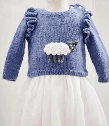 Worked in stocking stitch with contrasting moss stitch edgings, this jumper is a classic knit little ones will love. This baa-ewe-tiful project has lots of texture and it's not just the moss stitch edgings - check out that wonderful woolly sheep made of squishy bobbles. Fun frills and a trio of flower shaped buttons are the perfect finishing touches for this little jumper.