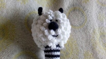 My daughter is currently obsessed with going to visit a nearby farm so I have spent a lot of time looking at the animals and decided the sheep would make a nice rattle. The bold colours are good for a baby and the bobbles for the sheep's wool will add an interesting texture for them to feel. I have added 2 rattles for extra noise but 1 in the head would do fine.