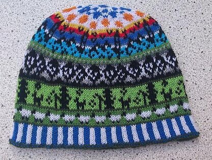 Due to the many color changes it is a hat for more experienced stranded knitters. However it's easier to knit than you may think as there are at most two colors in one round!
