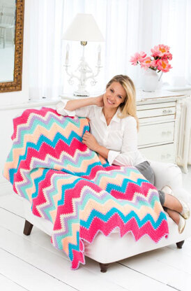 Sherbet Ripple Throw in Red Heart Classic Solids - LW3185 - Downloadable PDF is a free Intermediate Crochet pattern by Katherine Eng, available as a Downloadable PDF and includes instructions in English. Super fun to make, this pattern could be your next masterpiece!