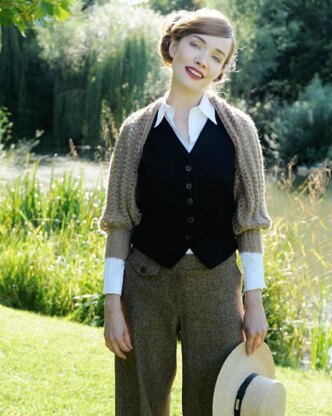 Sherri Shrug is worked sideways from cuff to cuff all in one piece. Its worked flat with two small sleeve seams to finish. Worked on big needles, this is a piece of knitting that really grows fast!
