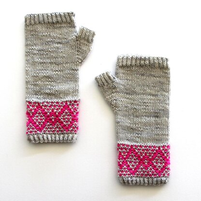 The Shine On Mitts are worked in the round, bottom up, with both charted and written instructions included.