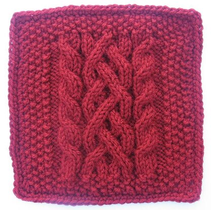Very detailed instructions for great little 9” afghan block. Excellent for swaps. Crochet edging option. Nice cables and seed st borders (option to garter edges).