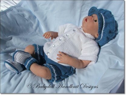 Knitting pattern for an outfit consisting of shirts, shorts, peaked hat and shoes. Simple to knit and very cute!