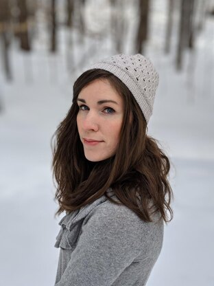 A light and breezy spring cap featuring an eyelet lace pattern.