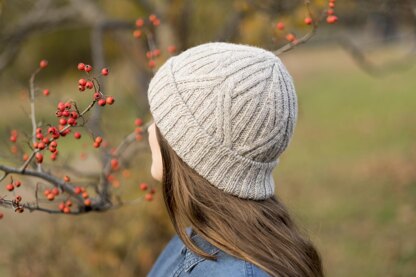 Shore is a ribbed watch cap with a subtle, Art Nouveau-inspired pattern of cascading diagonal cables. The allover ribbed texture gives this hat a snug but stretchy fit, and its understated, classic style flatters both men and women, making it a great gift knit. This design is knit in the round, and includes an optional tubular cast on and two style variations for the ribbed brim. Version A is a modern beanie with a single brim, while Version B has a longer brim to be folded over and worn in the classic watch cap style.