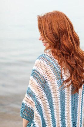 Overview: The Shoreline Ruana crochet pattern is the perfect summer cardigan or beach coverup. This light and airy wrap will be your new favorite accessory through the seasons, and it can also be worn many different ways. This design was made with Lion Brand Coboo Yarn, a cotton bamboo blend that is offered in a large color line, reminiscent of the beach and warm weather. Available in sizes XS-4X.