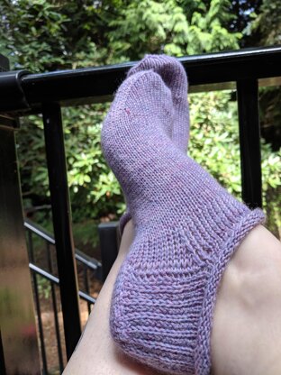 Short & Sweet socks are exactly that! Super shortie socks that knit up very quickly. I've incorporated twisted stitches to ensue a snugger fit without the usual slippage. Sizing is based on foot circumference with negative ease accounted for sizing selection. Pattern can be knit with dpn's or circulars. Socks are knit from the top down with a heel flap and wedge toe.