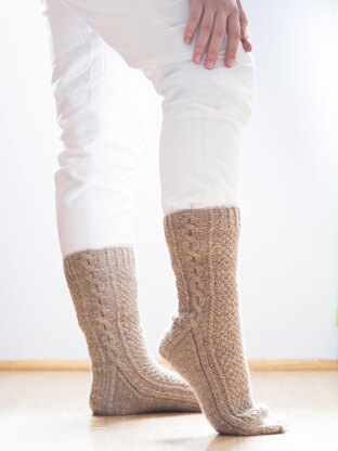 Sport weight socks are quick to knit, deliciously warm, and cushiony for extended outdoor activities or lounging around the house. Step out fearlessly into the weather with this delightfully cozy pair in four sizes (S/M/L/XL). Having just the right touch of texture without bulk, these are a classic, appealing to anyone in the family. Knit here in a smooth sport weight yarn, the design is easily adjusted for a different length, gauge, or yarn weight (see notes inside).