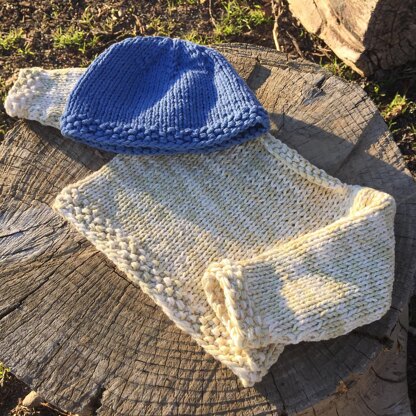 This quick and easy baby sweater is a hit at baby showers and has a matching hat that is also a breeze to make. This simple sweater is made for little, wriggly babies. A quick knit, it is perfect for a shower invitation that took you by surprise. This adorable little sweater is also a perfect canvas for embroidery, embellishment with buttons or ribbons, or anything else your creative heart desires.