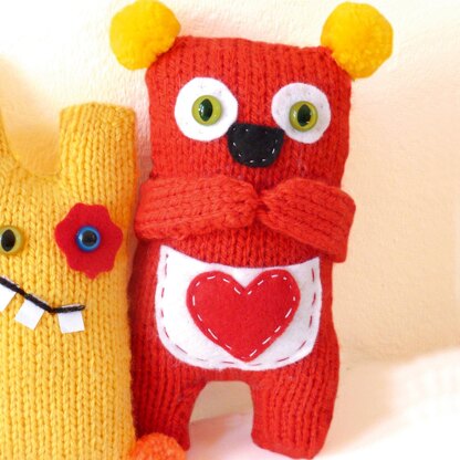 Knit and make up a shy koala teddy bear in chunky red yarn. This pattern is suitable for knitters with basic knitting ability.