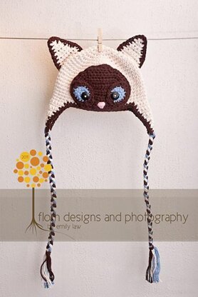 This is a PDF file for a crochet pattern to complete an adorable Siamese Cat hat. This makes a great hat for a photo shoot or for a photographer who needs photo props! You will get directions for two hat styles in this pattern: an earflap style with braids, and a beanie. There are yarn color suggestions to make a seal point, chocolate point, blue point, and lilac point Siamese Cat hats. The pattern is written for worsted weight yarn, but suggestions are also given for bulky yarn.