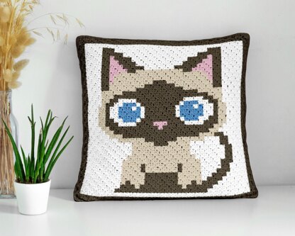 Bring elegant feline charm into your home with this Siamese Beige Cat pillow! Designed using the mini Corner-to-Corner (C2C) crochet technique, this stylish pixel design is perfect for cozy cushions or decorative padding.