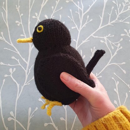 Sid is a very sweet and sociable blackbird - and here's the PDF knitting pattern to knit him! He's 15cm tall (that's the perfect size to fit in your hand for a blackbird cuddle), and is knitted flat on 4mm needles. No knitting in the round, or tricky technical stuff, so he's a fun, simple knit, which is suitable for beginners or someone looking for a chilled project.