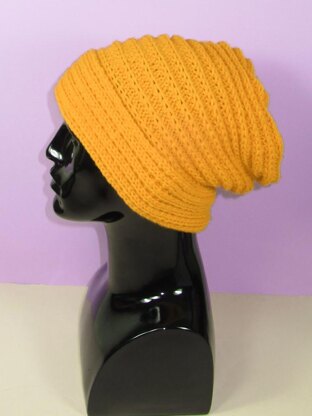 This is my Sideways Fishermans Rib Cuff Slouch Hat knitting pattern. This wonderful hat is quick and easy to make. The knitting pattern provides full instructions for 3 sizes, S (child) M (teen / small woman) & L (adult) and there are photos to help you with the simple makeup. Its worked flat on 4 mm needles in any dk yarn of your choice. This knitting pattern is available to buy here.