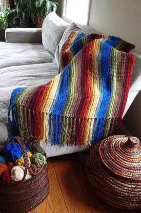 The Sierra Madre blanket is easy to crochet because it works up quickly and grows more beautiful with each stripe. It's easy to make it yours and play with color combinations to suit your style. The vertical stripes and fringe eliminate the tedious chore of weaving in yarn ends!