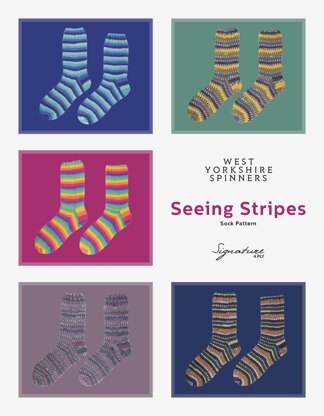 Signature 4 Ply Seeing Stripes Sock in West Yorkshire Spinners Signature 4 Ply - WYS0016 - Downloadable PDF is a Intermediate Knitting pattern by Christine Perry, available as a Downloadable PDF and includes instructions in English. Super fun to make, this pattern could be your next masterpiece!