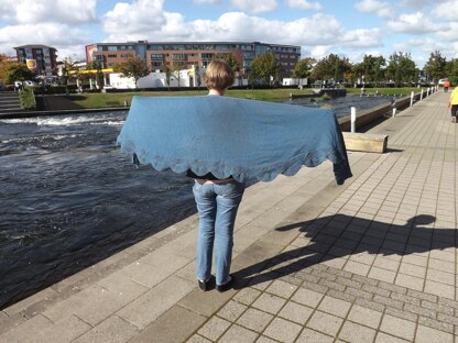 The signature shawl is a shawl that have longer ends that will drape gracefully around the shoulders and keeps in place without a pin. The shawl is knitted in one piece starting at the outside edge of the shawl.