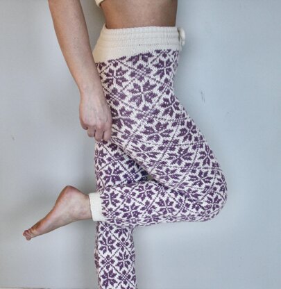 Cute pants with fun Star pattern. Designs to match the Sigrid bralette. Knitted top-down and described by charts and written instructions. The pants are knitted in one piece and there is no sewing involved. Tight fitted but comfortable. Perfect loungewear.
