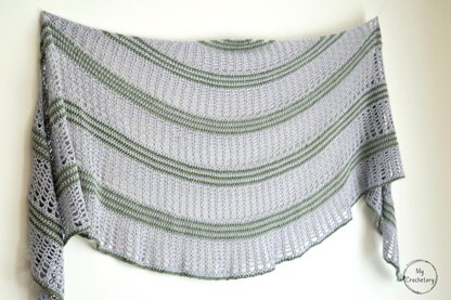 Sigrid shawl is an elegant and modern crochet crescent shaped wrap with solid and lace sections. It's fits perfectly over your shoulders and also be bundled about the neck as a scarf. It is a relaxing project made top-down in one piece with two colors but you can also use any fingering yarn you want. The pattern has written and charted (for lace section) instructions.