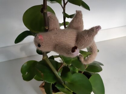 This silky anteater measures 16 cm from rear end to snout, the tail is 13 cm long. It is an easy to medium project, that requires some round knitting and short rows. Pipe cleaners are used to make the limbs pliable and the tail prehensile.
