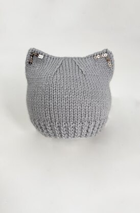 Adorable baby kitten hat is basic knit with cute ears on top. The sequins on the ears are sewn on at the end and are optional. The brim is similar to twisted rib stitch but slightly different. Quick and easy to knit beanie for a baby 0-3m. The hat is worked on DPNs but can be knitted on long circular needles with magic loop method too. The hat is worked bottom - up.