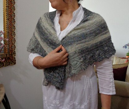Pattern InfoSilver Rain is a unique and easy to knit Lace Shawl. The shawl begins at the center and is worked outwards to border. There are two yarn-over increases in every row, the shawl is worked in stockinette, the lacy border is worked sideways at the end. The sample shawl is worked using Lion Brand Shawl in a cake using colorway: gray sparkle fades
