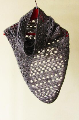 Silver Twilight is a lightweight lacy cowl for spring/autumn. Cowl is crocheted from the bottom up as one piece - triangular portion is worked flat, then triangle is joined and the cowl is worked in rounds. As a special touch you might like to add a tassel or a fringe to the bottom.