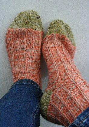 Yarn: sock yarn 4ply held double, you need a minimum of 2 different colors. You may wish to change the color for the heel and the toes or work with your leftovers. Have fun!