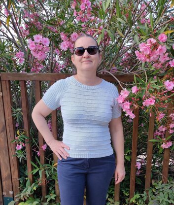It is worked from top down, in the round and seamlessly. Its purl rows act like stripes, giving rhythm to the knitting and making it addictive.